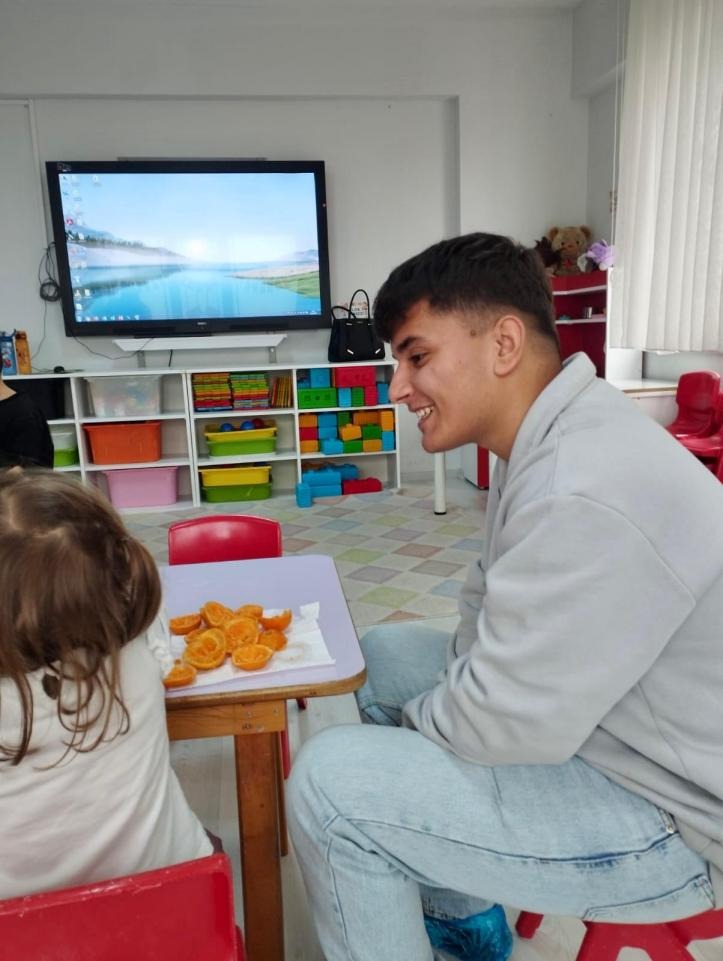 16 Aralık 2025 tarihli “Anaokulunda Bir Gün” isimli etkinlik kapsamında öğretmen adayları lisans eğitimlerinin ilk yılında bir okul öncesi eğitim ortamını yerinde gözlemleme ve çocuklarla çeşitli eğitsel etkinlikler gerçekleştirme fırsatı buldu. Hem öğretmen adayları hem de çocuklar açısından keyifli ve verimli geçen etkinlik, öğretmen adaylarının mesleğe ilişkim fikir edinmeleri açısından da önem taşıdı.
