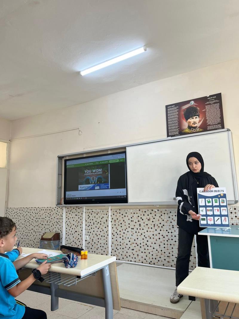 Fakültemiz İngilizce Öğretmenliği Bölümü bünyesinde Dr. Öğretim Üyesi Melissa Özlem Grab ve Dr. Öğretim Üyesi Çiğdem Güneş Çilek danışmanlığında yürütülen Topluma Hizmet dersi kapsamında son sınıf öğrencileri anlamlı bir projeye imza attı. Öğretmen adayları, bir dönem boyunca gönüllü olarak farklı yaş gruplarındaki öğrencilere İngilizce dersleri vererek dili eğlenceli yöntemlerle öğretmeyi hedefledi.