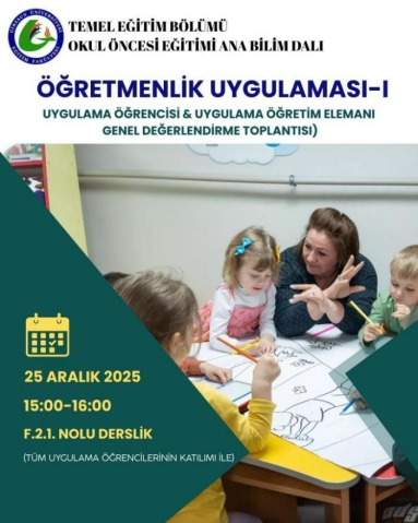 Fakültemiz Temel Eğitim Bölümü Okul Öncesi Eğitimi Ana Bilim Dalı, 2025-2026 akademik yılı güz yarıyılında yürütülen “Öğretmenlik Uygulaması-I” dersi kapsamında genel değerlendirme toplantısı gerçekleştirdi.