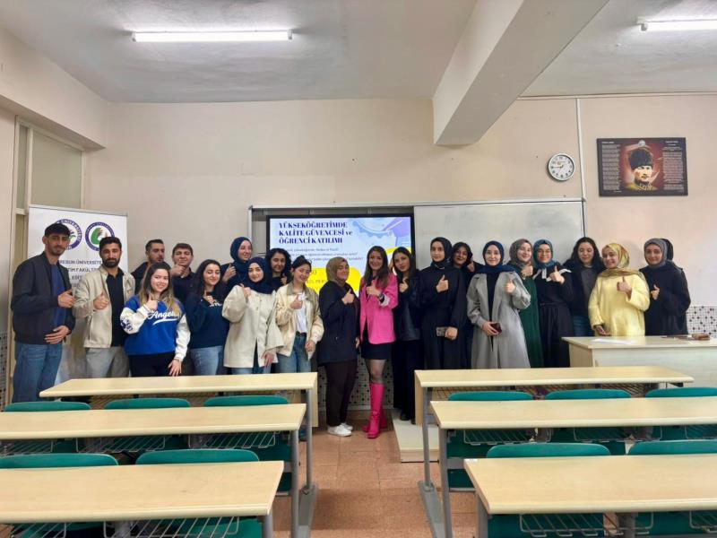 04 Aralık 2025 tarihinde Fakültemiz F.2.1 nolu dersliğinde Ana Bilim Dalı Başkanı ve Kalite Güvencesi ve Akreditasyon Uzmanı Doç. Dr. Gonca ULUDAĞ’ın konuşmacı olarak yer aldığı “Yükseköğretimde Kalite Güvencesi ve Öğrenci Katılımı” başlıklı etkinlikte lisans ve yüksek lisans programı öğrencileri yer aldı.