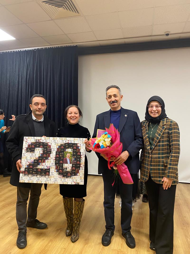 Üniversitemizin her kesimi tarafından her yıl büyük bir heyecanla beklenen kısa oyun günlerini geleneksel hâle getirip yirmi yıldır başarıyla sürdüren Dr. Öğr. Üyesi Dursun ŞAHİN’e, Dekanımız Prof.Dr. Güven ÖZDEM tarafından çiçek ve teşekkür belgesi takdim edildi. Ayrıca Türkçe Eğitimi Ana Bilim Dalı Başkanı Prof.Dr. Müzeyyen ALTUNBAY tarafından tarafından hocamıza 20. yılın anısına plaket ve hediye takdiminde bulunuldu.